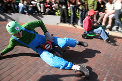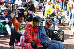 Yesterday, while eating and drinking in North Beach SF, I stumbled upon an event put on by Jon Brumit called "Bring Your Own Big Wheel." What a trip :-D Imagine adults, dressed up as super heros and other oddities, racing big wheels down a very steep, very windey road. There were a ton of wipe-outs and scrapes but everyone laughed it off and was proud to show their bruises. This event was non-stop fun.