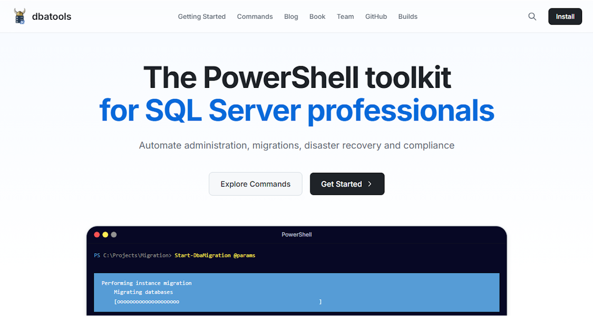 So that's what I did with dbatools. I told Claude: "Make it look like cursor.com but for dbatools."