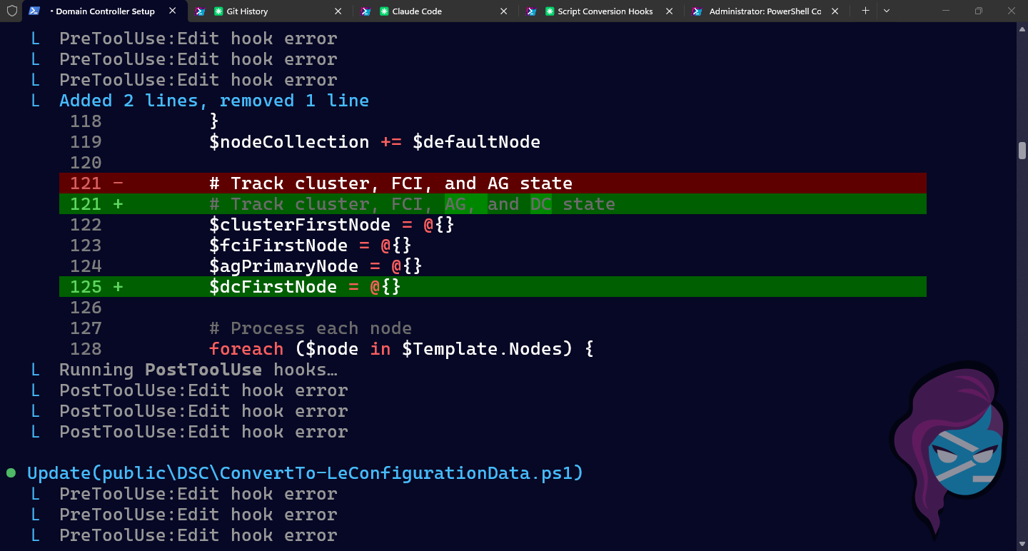 So it gave me some hooks and after I understood how they worked, I asked Claude to help me build hooks to prevent how it interacts with PowerShell and the repeated errors I see.